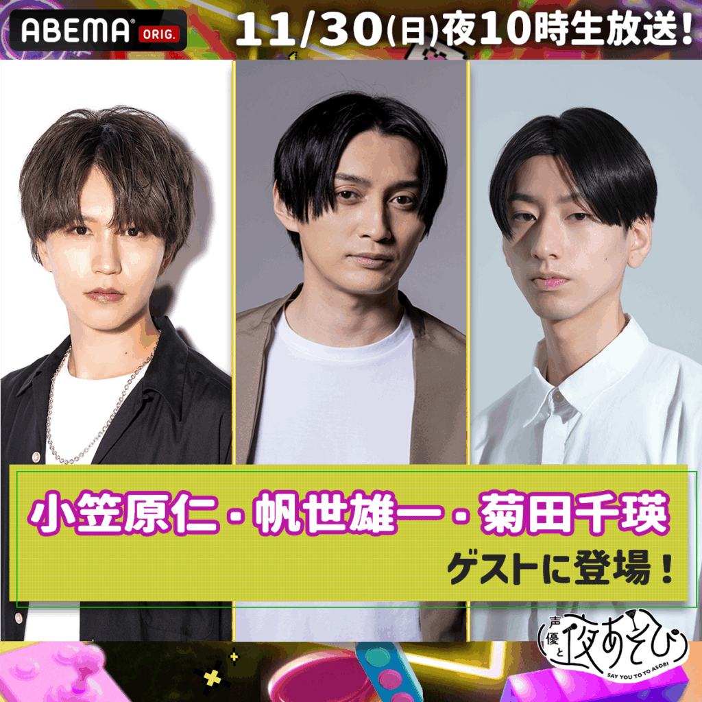 11月30日(日)の放送に、小笠原仁さん、帆世雄一さん、菊田千瑛さんがゲスト出演することが決定!