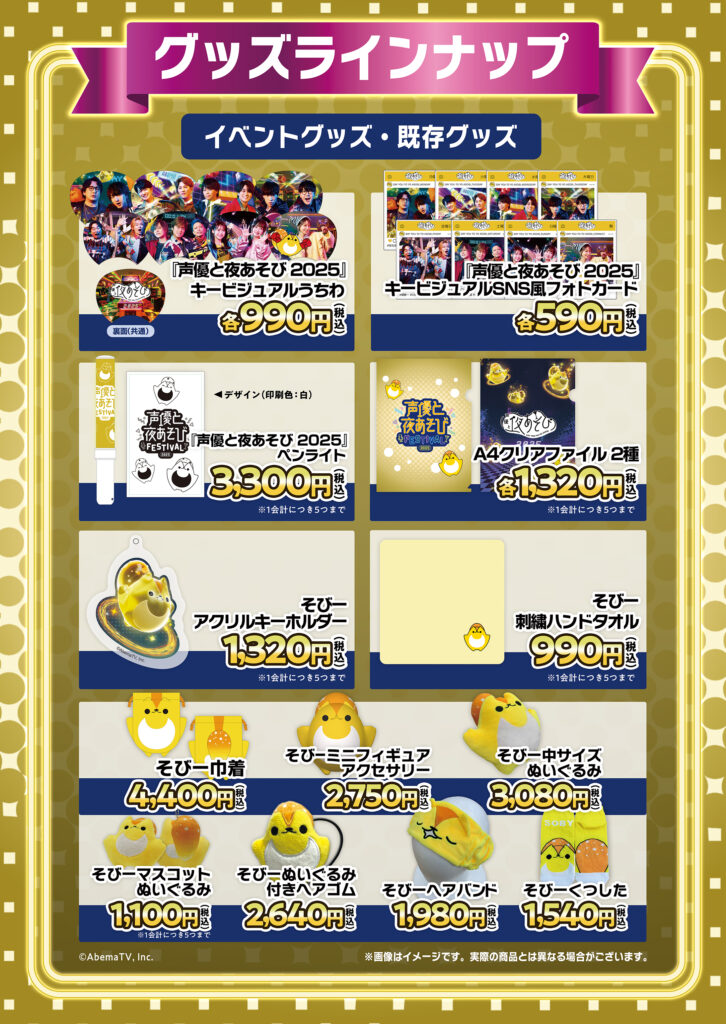 「声優と夜あそびフェスティバル 2025」イベント販売グッズ情報解禁!